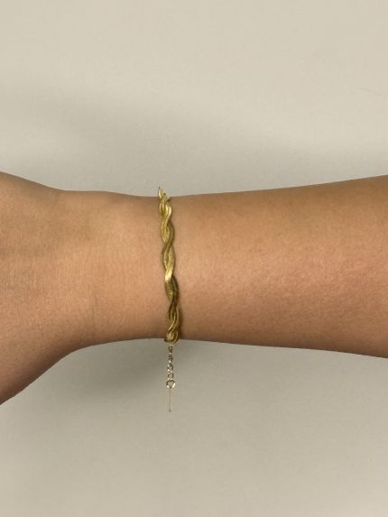 Χειροπέδα λεπτή με πυκνή πλέξη σε χρυσό χρώμα